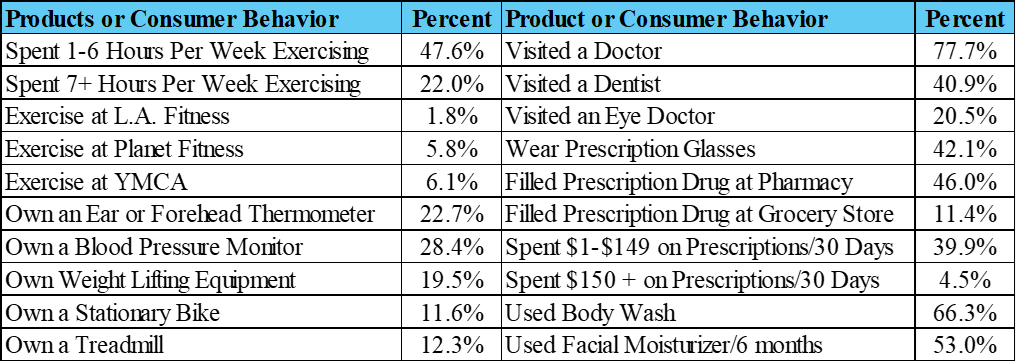 People in Elgin spend a lot of money on taking care of themselves whether it is seeing a doctor, going to a barber salon or barber shop, exercising at a gym or purchasing beaty products such as shampoos and creams. Elgin presents a strong and growing opportunity for businesses in the health and beauty industry offering a solid foundation for both service and retail-based businesses. The information obtained shows that Elgin consumer behavior, in most categories, is at or above the U.S. average. The potential for more market share is in categories like seeing an acupuncturist (only 1.5% visit), see a podiatrist (3.3%), buy prescriptions online (2.3%), and consider buying vegetarian products (1.4%). Here is a brief list of the Elgin’s Health and Beauty Market: